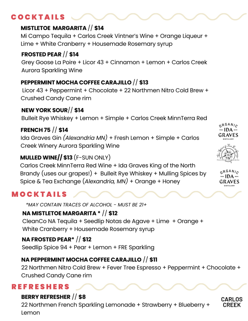 They don't call us MN's largest winery for nothing. Enjoy a glass of red, white, pink, bubbly, or our famous Minnesota Nice series.
