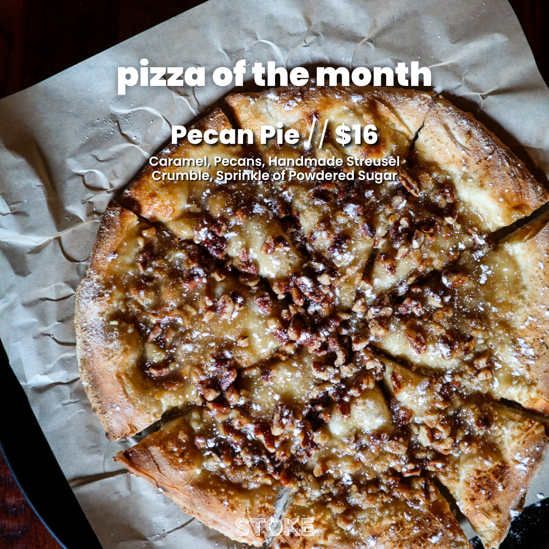 - Caramel, Pecans, Handmade Streusel Crumble, Sprinkle of Powdered Sugar