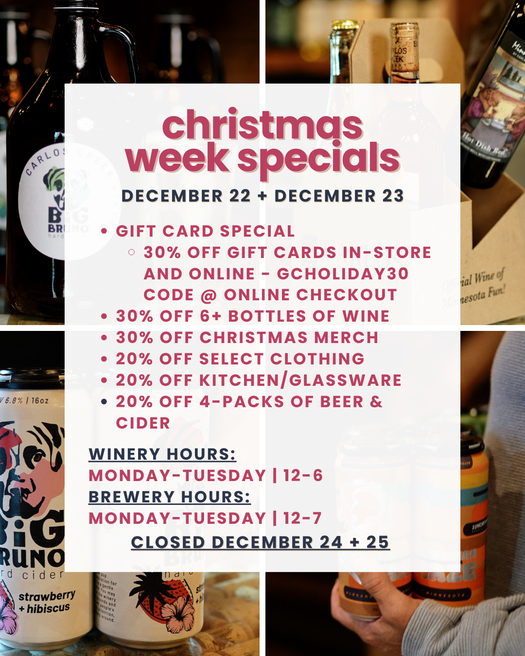 Get ready for an epic holiday season with last-minute deals on all your fave sips at Carlos Creek 12/22 + 12/23!