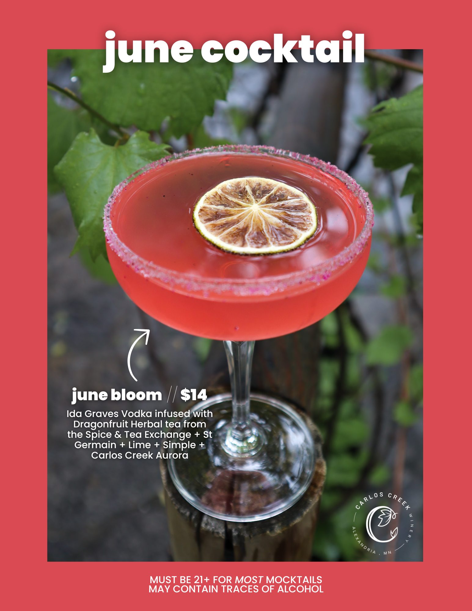 Searching for the best cocktails in Alexandria, MN? Look no further than Carlos Creek, where handcrafted cocktails meet bold flavors. Located in Alexandria, Minnesota, our winery is more than just one of the top Minnesota wineries—it's a destination for unique, seasonal cocktails made with high-quality spirits, house-made syrups, and fresh, local ingredients.