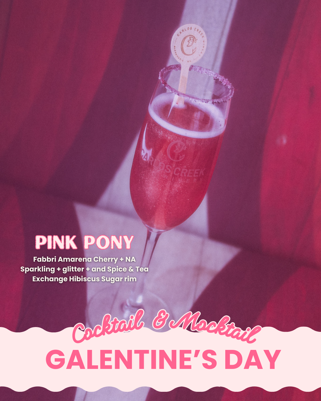 The Carlos Creek Winery tasting room will have a special 'Pink Pony' cocktail and mocktail to celebrate too!