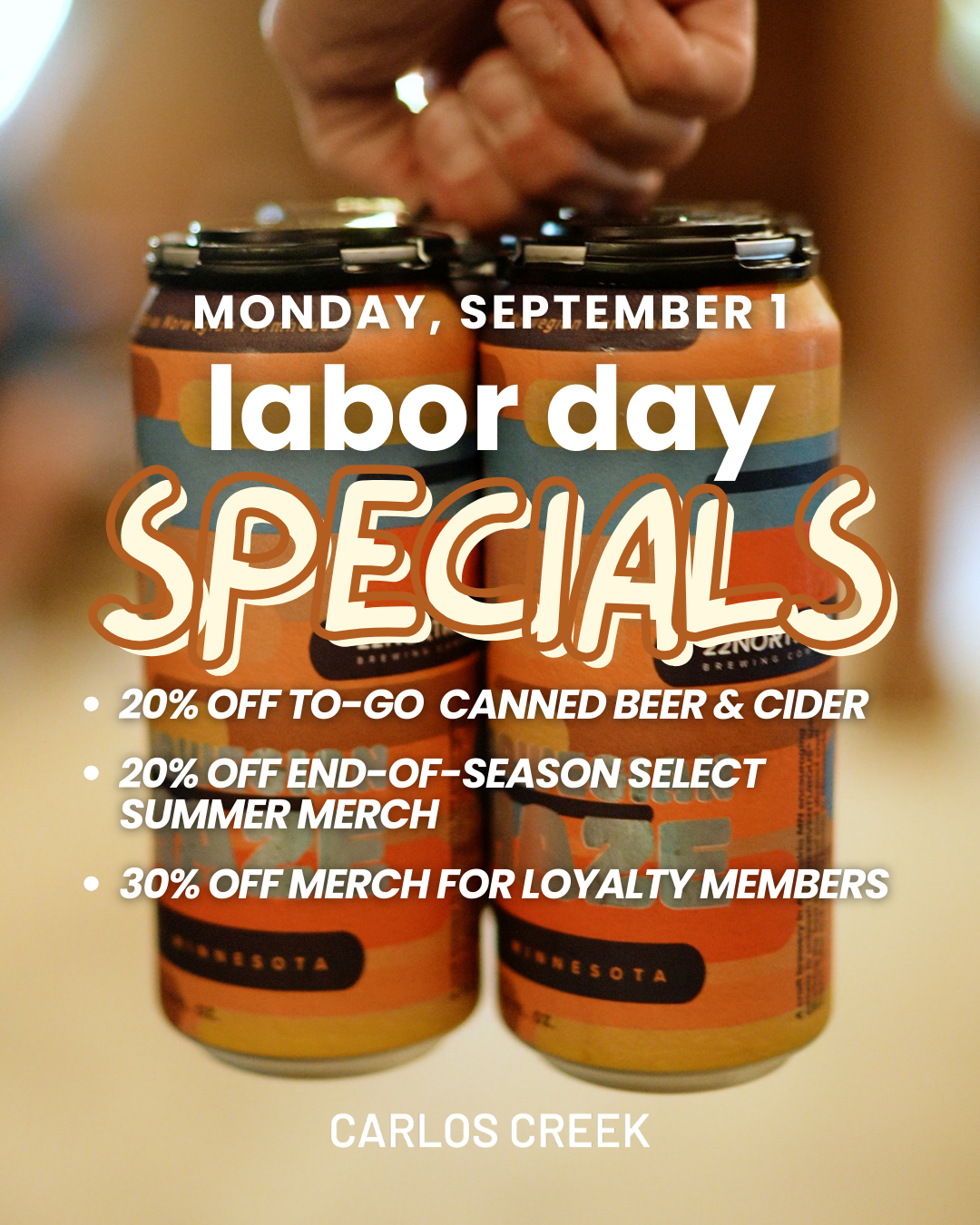 ✨ 20% off to-go canned beer & cider
