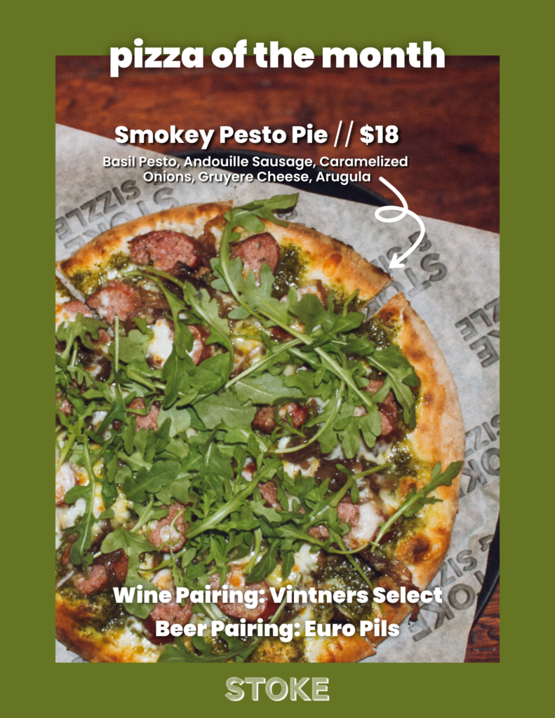 Stop by to see what’s new, enjoy the best of the season, and find your next favorite slice. New flavors drop at the start of every month and you can get them that month anytime Stoke is open!