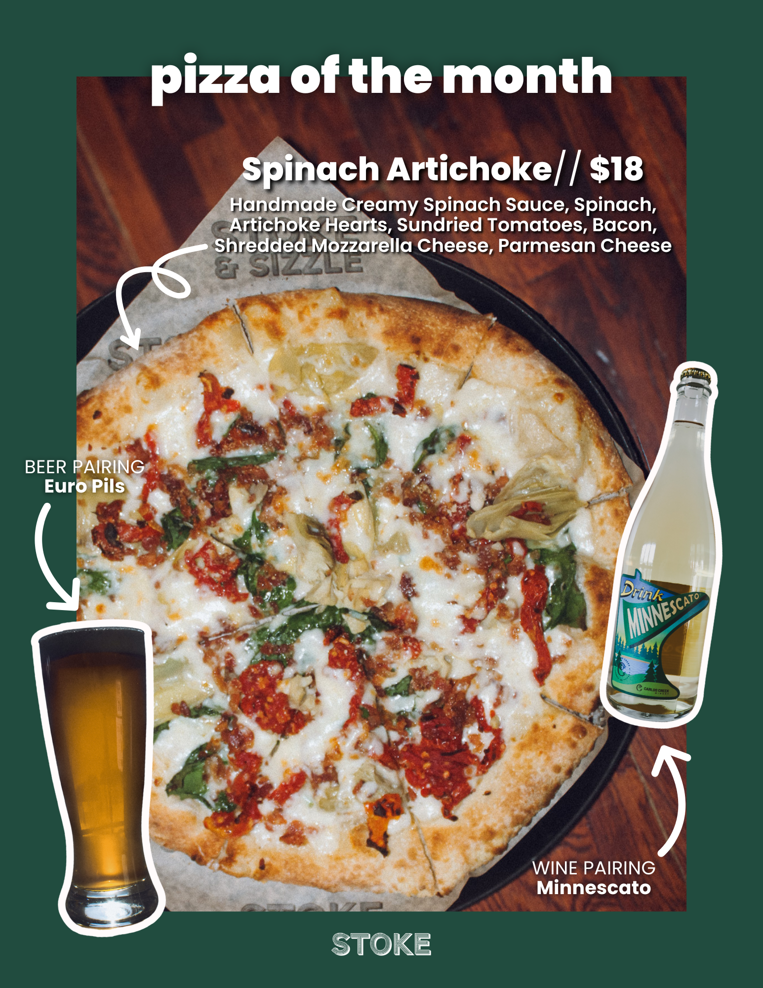December Pizza of the Month at Stoke - Spinach Artichoke