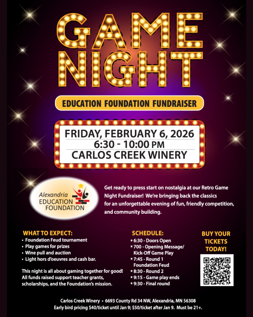Get tickets for pure nostalgia at the Alexandria Education Foundation's Retro Game Night Fundraiser! Bringing back the classics for an unforgettable evening of fun, friendly competition, and community building.